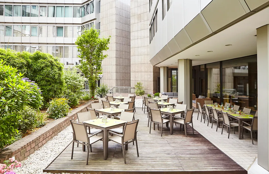 Travellers restaurant in het pand in Düsseldorf serveert internationale specialiteiten.